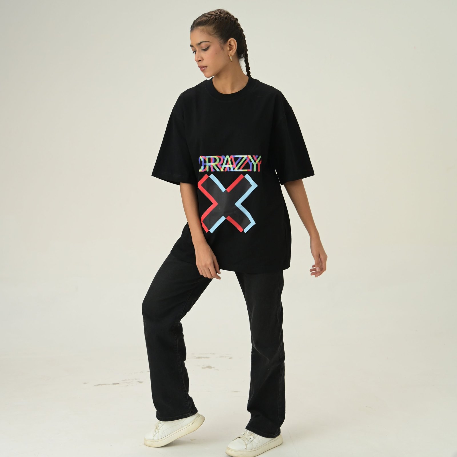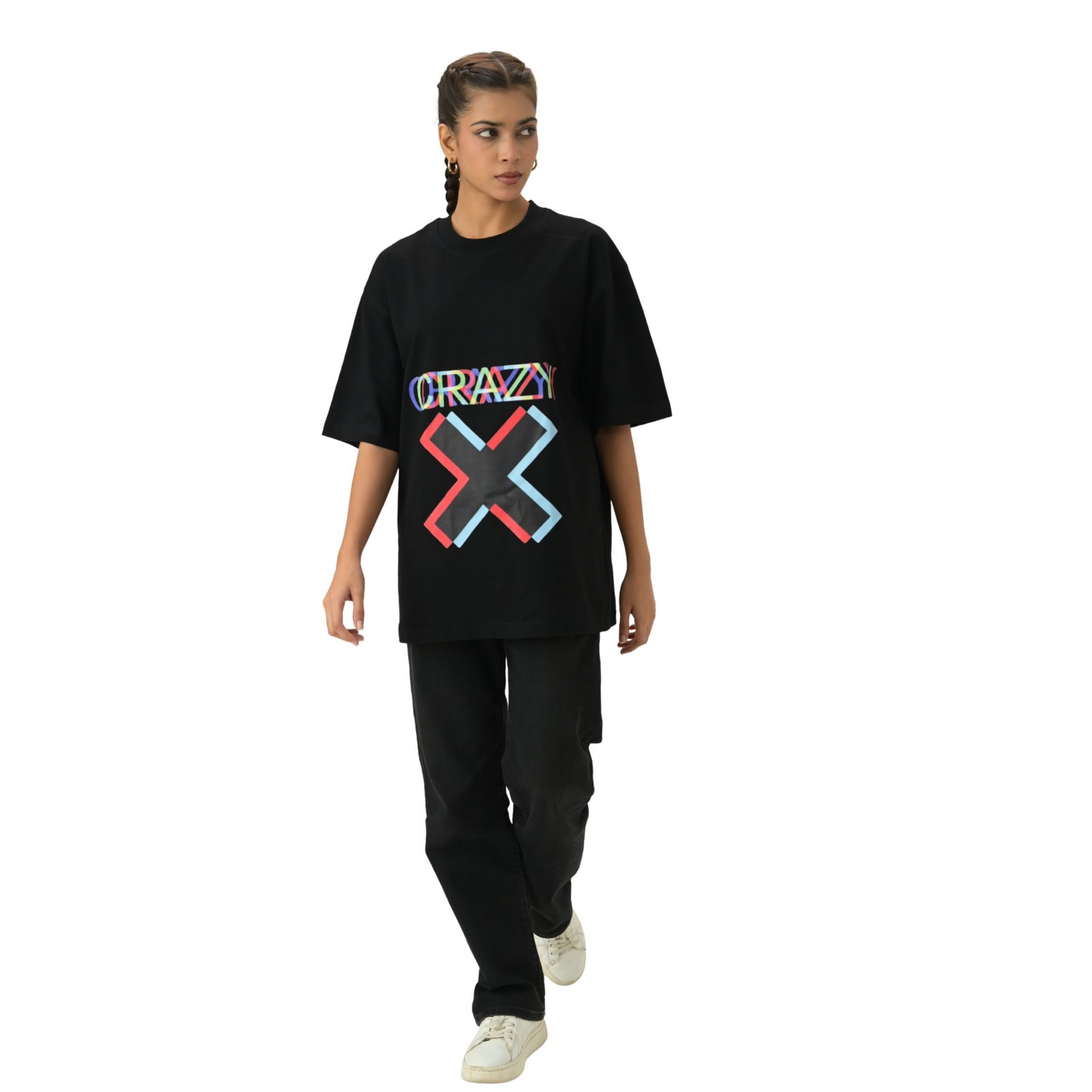 Set on a premium black base, this piece features striking “CRAZY X” typography paired with a geometric cross design symbolizing energy, individuality, and confidence. The multi-color detailing creates dynamic contrast while maintaining a clean, contemporary layout.