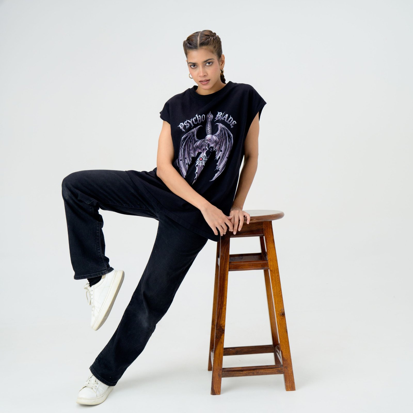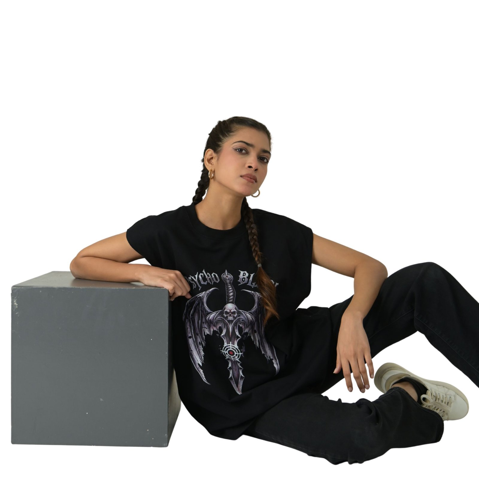 The graphic features a dark blade-inspired illustration with gothic detailing, designed to reflect intensity, precision, and controlled aggression. High-definition printing captures sharp edges and deep contrast, giving the artwork a clean yet fierce impact.